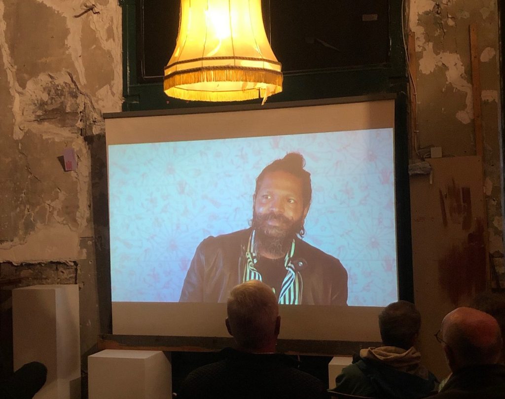 Achim Konrad als Moderator bei der Präsentation in Utopiastadt am 7.10.2021 ©Uta Atzpodien