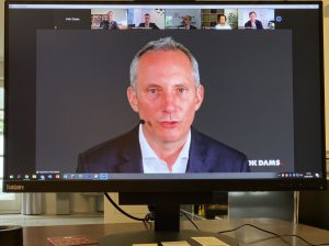 Colja M. Dams bei seinem Zoom-Vortrag – © Vok Dams iNotesColja M. Dams, Geschäftsführender Gesellschafter und CEO der Unternehmensgruppe VOK DAMS worldwide, hielt seine Live-Vortrag „corona-konform“ via Zoom. Titel „The new power of hybrid events“.