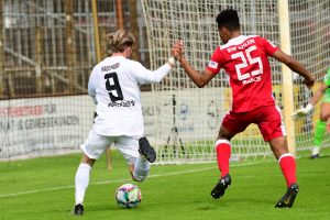 Wuppertals Kevin Hagemann (l.) im Zweikampf mit Francis – © Jochen ClassenAm Mittwoch (25.08.) kommt es um 19 Uhr im Stadion am Zoo zum ersten Kracher der jungen Saison: Das mit Spannung erwartete Derby gegen den alten Rivalen und Aufstiegsfavoriten Rot-Weiß Essen steht an.