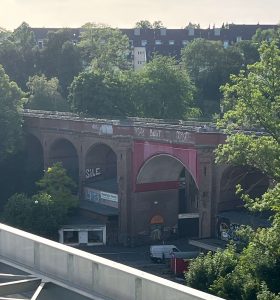 Im Rahmen einer Informationsveranstaltung der BOB gGmbH und der Stadt Wuppertal zum Stand der Arbeiten am Nachbarschaftspark, gelegen zwischen der Wichlinghauser Straße und der Max-Planck-Straße, wurde den Teilnehmerinnen und Teilnehmern der Aufstieg aufs Dach des BOB-Campus Gebäudes ermöglicht. Es bietet sich von dort aus ein überragender Blick über die Dächer Wuppertals. Das Dach ist zu ca. zwei Dritteln überdacht, ein Drittel ist völlig offen. Der gesamte Bereich soll künftig interessierten Bürgerinnen und Bürgern nach Anmeldung für genehmigte Aktivitäten zur Verfügung stehen. Eine tolle Idee!