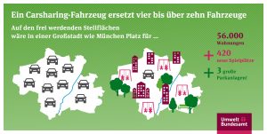- Falsch: Das Gegenteil ist der Fall: ein Carsharing Parkplatz ersetzt ca 4-10 normale Parkplätze. Andere Studien nennen 7-14 Fahrzeuge. Vor allem in Wuppertal zeigen die Erfahrungen der knapp 30 Carsharing-Standorte mit rund 60 Fahrzeugen bereits eine überdurchschnittliche hohe Reduzierung von privaten PKW durch Carsharing. Sie tragen ganz im Gegenteil zur Reduzierung des Parkdrucks bei.