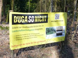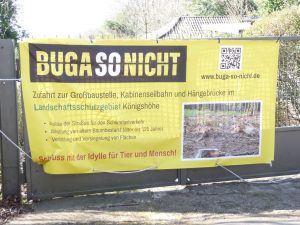 Nachdem hier und an anderer Stelle schon wiederholt auf die zahlreichen Unrichtigkeiten und Irreführungen in den Darstellungen der BUGA-Gegner, insbesondere auf der Homepage hingewiesen worden war, und diese nach wie vor nicht korrigiert wurden, geht es diesmal um den Inhalt der diversen auf der Königshöhe aufgehängten Banner: