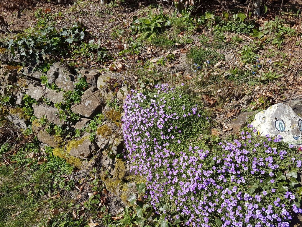Symbolfoto Blaukissen auf einer Natursteinmauer„Barrierefreies Naturerleben“