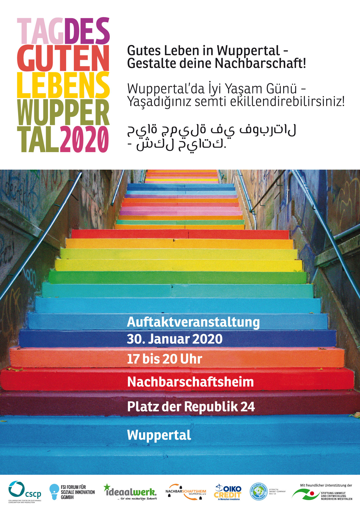 Zur Vorbereitung des Tages des guten Lebens findet jetzt die Auftaktveranstaltung am 30. Januar im Nachbarschaftsheim am Platz der Republik statt. Dort diskutieren Bewohner*innen, Initiativen und Vereine, Engagierte aus Kultur, Wirtschaft und Politik, wie der Tag des guten Lebens gestaltet werden soll, welche Inhalte wichtig sind und wie die Menschen in Wuppertal und vom Ostersbaum sich beteiligen können.