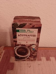 Neben mehreren Kilopackungen mit Fairtrade-Kaffee in ganzen Bohnen gibt es eine 500g-Packung „Röstkaffee gemahlen“.