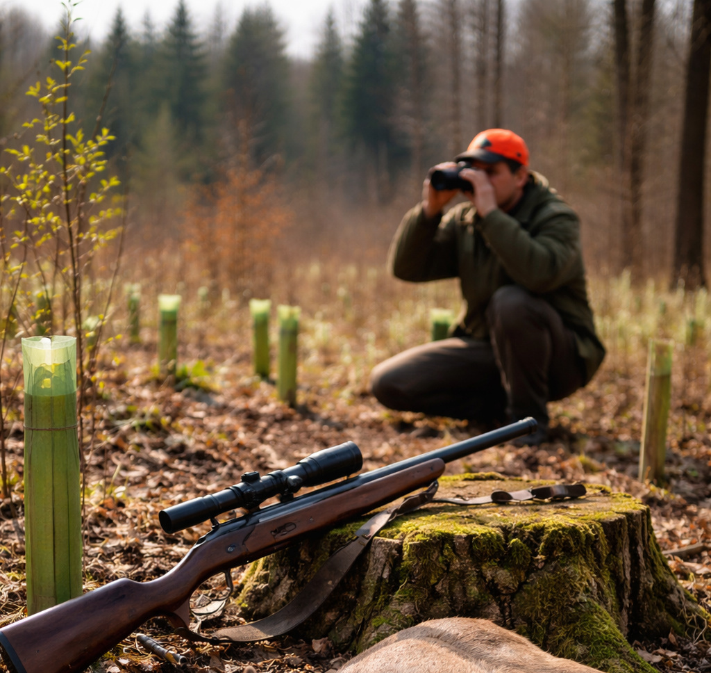 Der Kampf um den zukünftigen Wald wird inzwischen nicht nur mit Pflanzspaten, sondern auch mit Jagdgewehren geführt. 🌲🦌