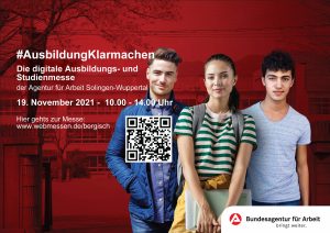 Alle Jugendlichen, die eine Ausbildungsstelle oder einen Studiengang suchen, sollten sich Freitag, den 19. November notieren. An diesem Tag bietet die Agentur für Arbeit Solingen-Wuppertal eine digitale Ausbildungs- und Studienmesse an. Rund 40 Ausbildungsbetriebe aus der Region sind mit über 300 freien Ausbildungsplätzen vertreten und auch die Uni Wuppertal, sowie die Industrie- und Handelskammer sind dabei.