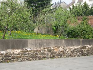Die Ruine der Synagoge Elberfeld auf dem Gelände der Begegnungsstätte Alte Synagoge ©BASMit der Begegnungsstätte Alte Synagoge, eröffnet im April 1994, haben die Architekten Godfrid Haberer und Peter Busmann gemeinsam mit dem Landschaftsarchitekten Volker Püschel und dem Künstler Oksiuta ein städtebaulich einzigartige Gebäude- und Landschaftsensemble geschaffen. Der Grundriss der früheren Synagoge ist kenntlich gemacht, aber sonst sind Verweise auf das, was bis zum Novemberpogrom 1938 an der Elberfelder Genügsamkeitstraße gestanden hat, sehr zurückhaltend. Architektur und Landschaft werfen Fragen auf, und das ist auch ihr Sinn. Dr. Ulrike Schrader macht auf Einzelheiten aufmerksam und diskutiert mit den BesucherInnen mögliche Deutungen.