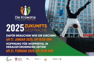 Interviewpartner*innen: Oberbürgermeister Dr. Schneidewind und Leiterin der Diakonie Dr. Federmann ein. Sie stellen sich der Frage, was Wuppertal wirklich braucht. Die Musik machen unser Krawatten Chor.