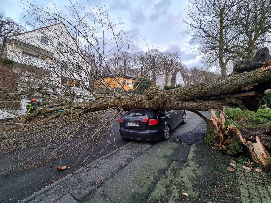 Orkan ZEYNEP, Baum auf Auto, Bochumer Autofahrer hatte Schutzengel
