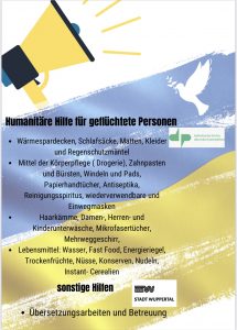 Die ersten Spenden sollen am Dienstag, den 01.03. in der Schule ankommen und am kommenden Freitag der Kirche und der Tafel übergeben werden. Die Schule sucht zudem weitere Personen aus Wuppertal, die gerne helfen möchten. Alle Sachspenden können montags bis freitags zwischen 08.00 und 17.00 Uhr in der Schule abgegeben werden.