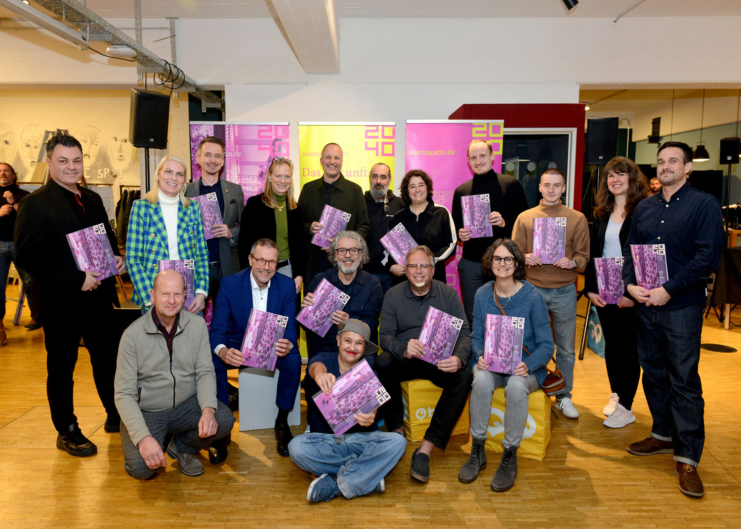 Gemeinsam in die Zukunft der Region: Beim Event zur Veröffentlichung der zweiten Ausgabe feierten Magazinmacher, Interviewpartner und Akteure aus der Stadtentwicklung | Foto: ©Bettina OsswaldGibt es eigentlich so etwas wie eine Bergische Vision? Was vereint uns? Wie sieht unsere Zukunft aus? Diesen Fragen gehen die Macherinnen und Macher des 2040 Magazins nach. Die zweite Ausgabe der vom BUGA-Förderverein herausgegebenen Publikation wurde am 29. Januar 2024 einem interessierten Publikum im Rahmen eines Events in der Codeks Factory in Wuppertal-Elberfeld präsentiert. Vereinsvorsitzender Holger Bramsiepe moderierte den Abend und interviewte einige der Anwesenden.