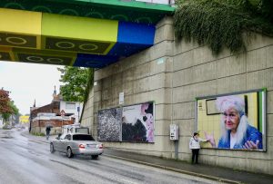 Ich bin jetzt nicht über sieben Brücken in Wuppertal gegangen, aber ich habe eine besucht – und zwar die Lego-Brücke an der Schwesterstrasse. Denn dort hängt ein großformatiges Plakat von mir, das mich als „Klofrau Irmchen“ zeigt. Die Kunstfigur habe ich während der Corona-Auftritts-Sperre aus der Taufe gehoben.