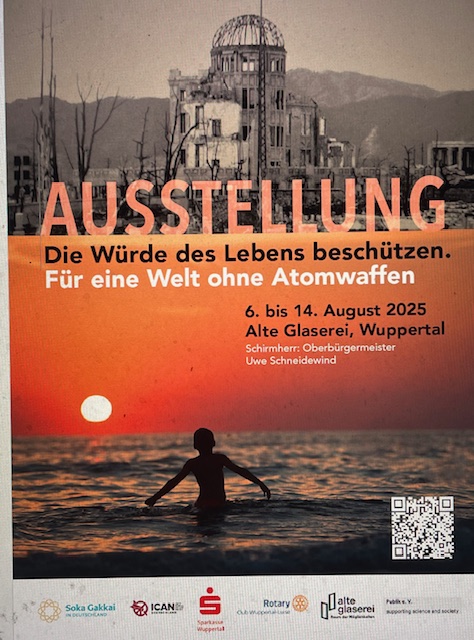 Anlässlich des 80. Jahrestages der Atombomben-Katastrophe von Hiroshima gestalten wir – aktive Wuppertaler*innen der buddhistischen Glaubensgemeinschaft Soka Gakkai – die Ausstellung