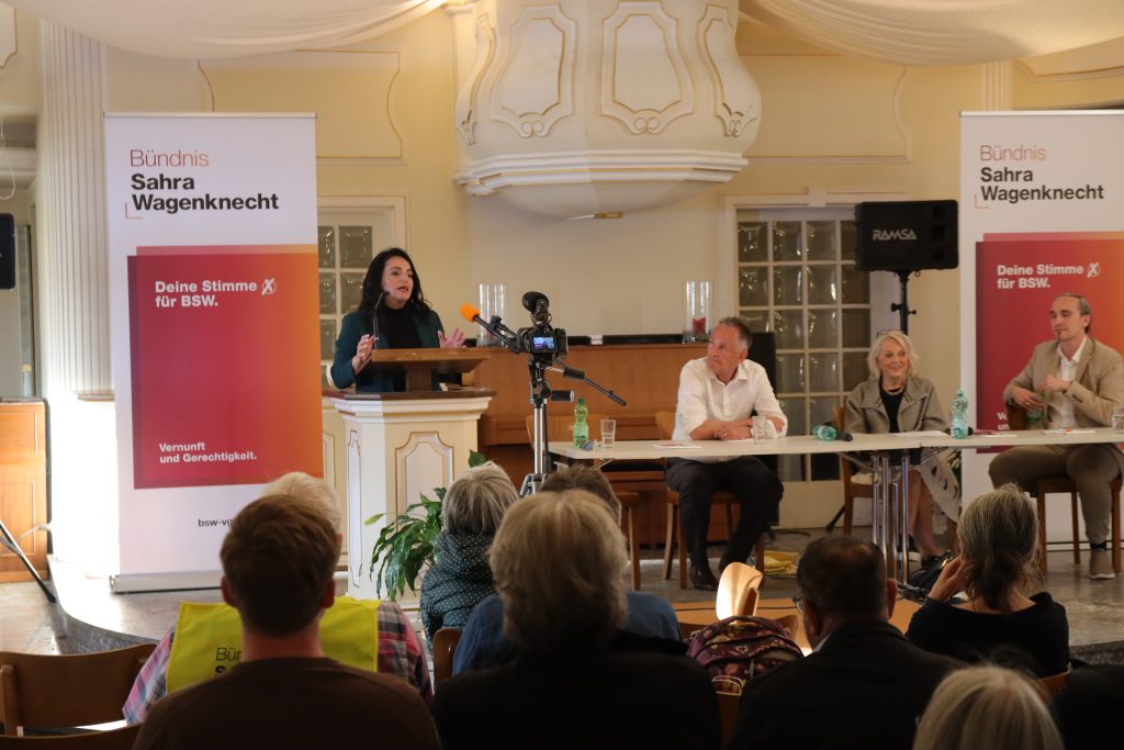 Sevim Dagdelen MdB und Michael von der Schulenburg, Kandidat für das EU-Parlament, stellten die Positionen des BSW zur Friedens- und Außenpolitik vor. Susanne Herhaus und Kai Merkel von der BSW-Initiative Wuppertal führten durch die Veranstaltung. Rund 70 Gäste nahmen an der lebhaften Diskussion teil.