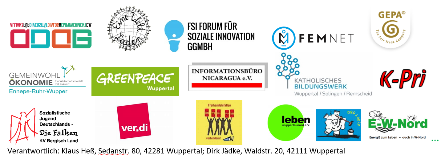 - Dafür haben sich in Wuppertal zahlreiche Organisationen für Klimagerechtigkeit auch auf lokaler Ebene zusammengetan und Bildungsveranstaltungen und Webinare durchgeführt, so auch am 10.06.2020 zur „Global verantwortlichen Öffentlichen Beschaffung“.