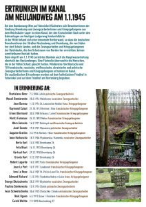 Dort möchten wir an die am 1.1.1945 im Kanal des Krutscheider Bachs ertrunkenen Menschen erinnern. Beim Angriff am 1.1.1945 zerstörten Bomben auch die Hauptwasserleitung oberhalb des Neulandweges. Eine Flutwelle überraschte die Menschen, die in der Röhre Schutz gesucht hatten. Mindestens fünf deutsche Bewohner:innen der Siedlung Bremkamp und 18 französische, sowjetische und polnische Zwangsarbeiter:innen und Kriegsgefangene ertranken im Kanal.
