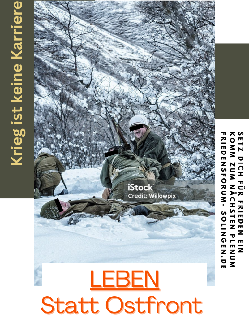 Am 25. Februar findet in der Cobra eine Bundeswehr-Informationsveranstaltung zum „neuen Wehrdienst“ statt. Diese Zeile des Rappers Finch bringt auf den Punkt, was wir kritisieren: Junge Menschen in der aufregendsten Phase ihres Lebens sollen für den Krieg rekrutiert werden. Das Friedensforum Solingen verurteilt diese Veranstaltung und fordert: Kein Werben fürs Sterben in Solingens Kulturräumen!