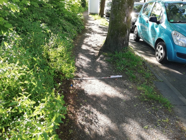 Jedes Jahr hatte sich der bewachsene Hang ein Stück weiter über den unbefestigten Bürgersteig geschoben. Der Abstand zwischen Bäumen und Litfaßsäule auf der einen Seite und Sträucher mit und ohne Stacheln auf der andern Seite, wurde immer geringer.