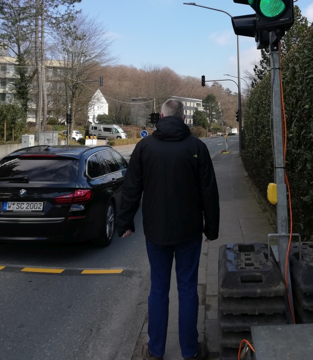 Doch wie sieht die Wirklichkeit aus? KW 9 im Jahre 2021 am Katernberg, Straße „In den Birken“ Fußgängerampel, zwischen Birkenhöhe und Katernberger Schulweg.
