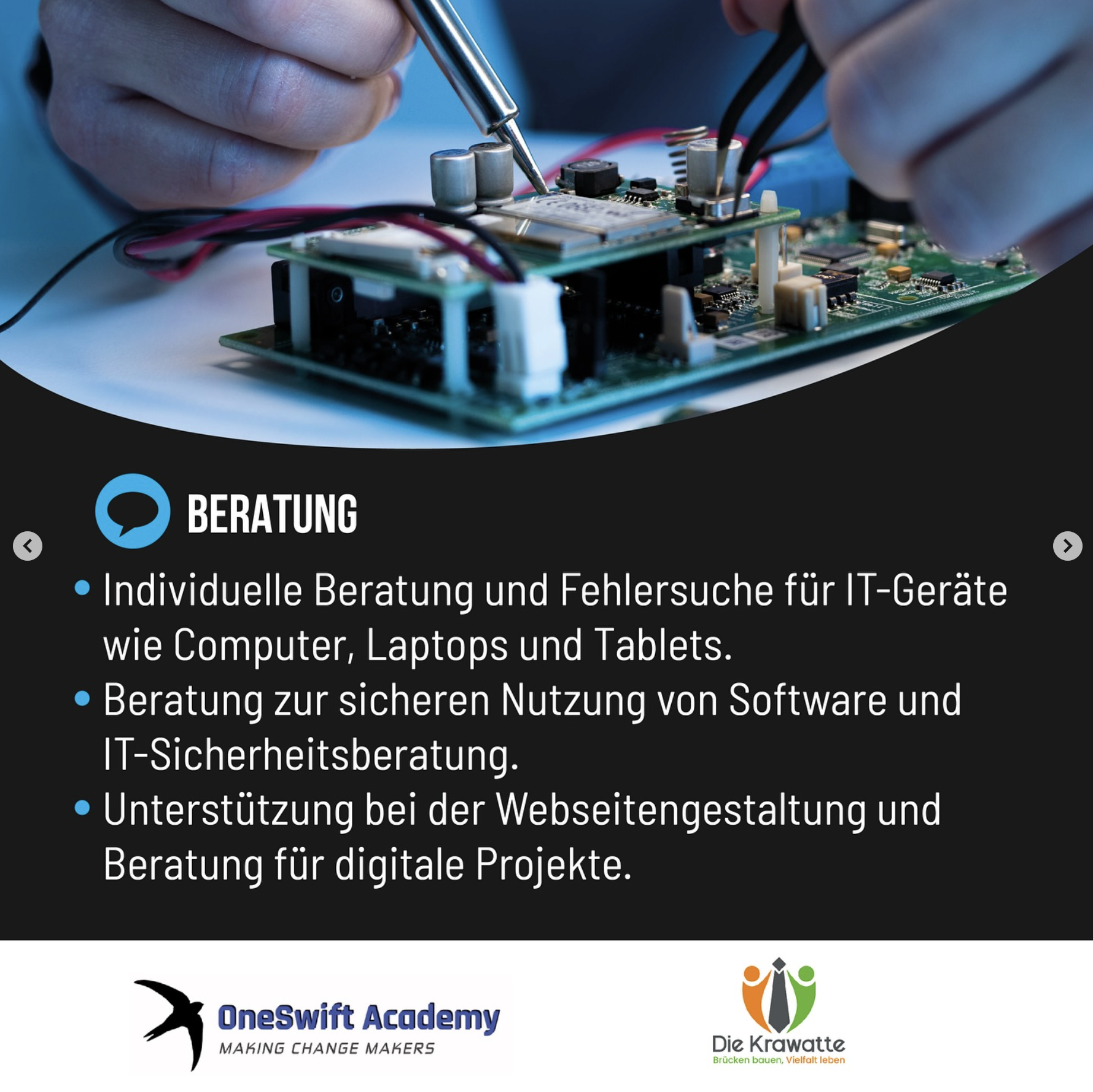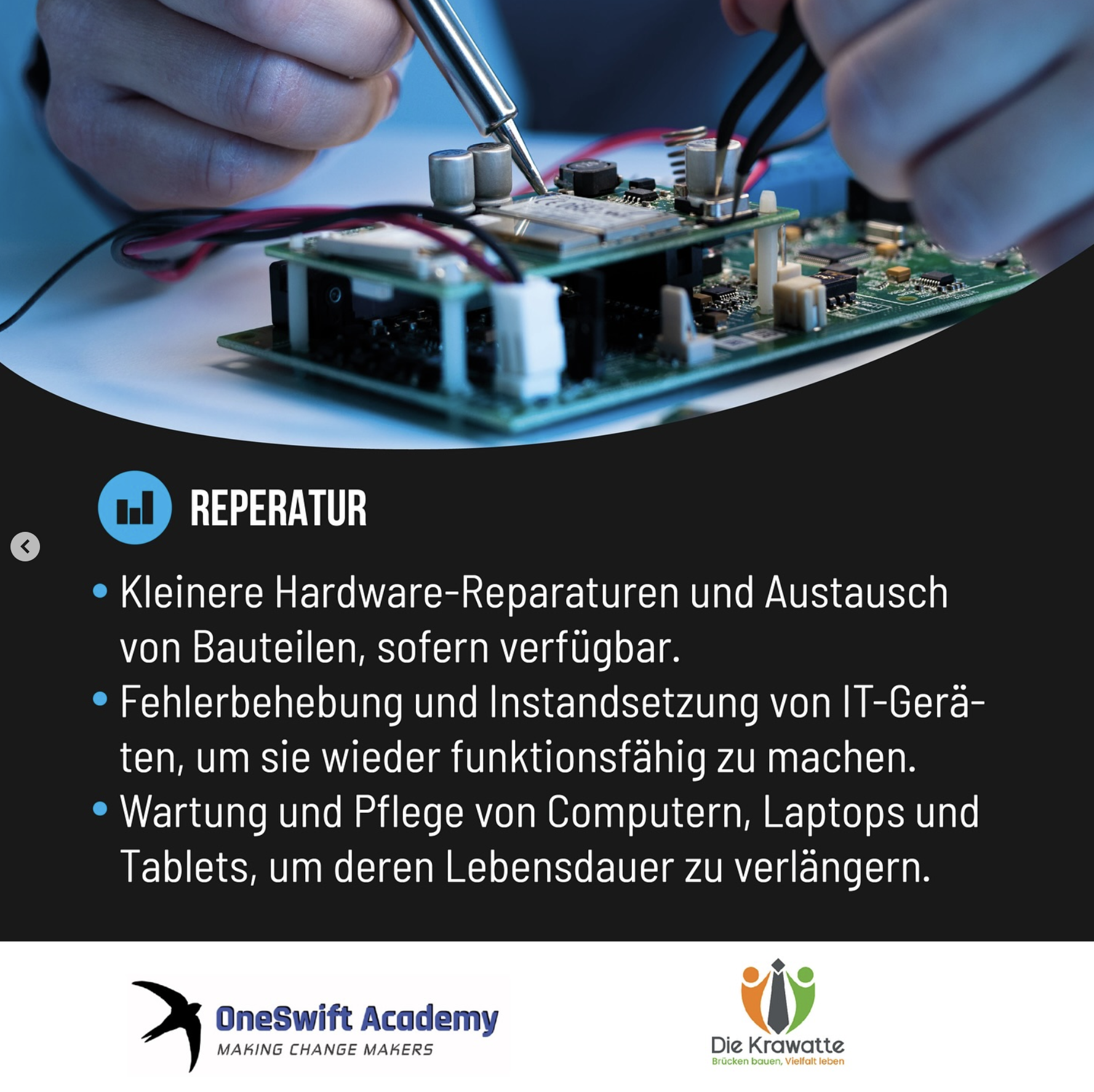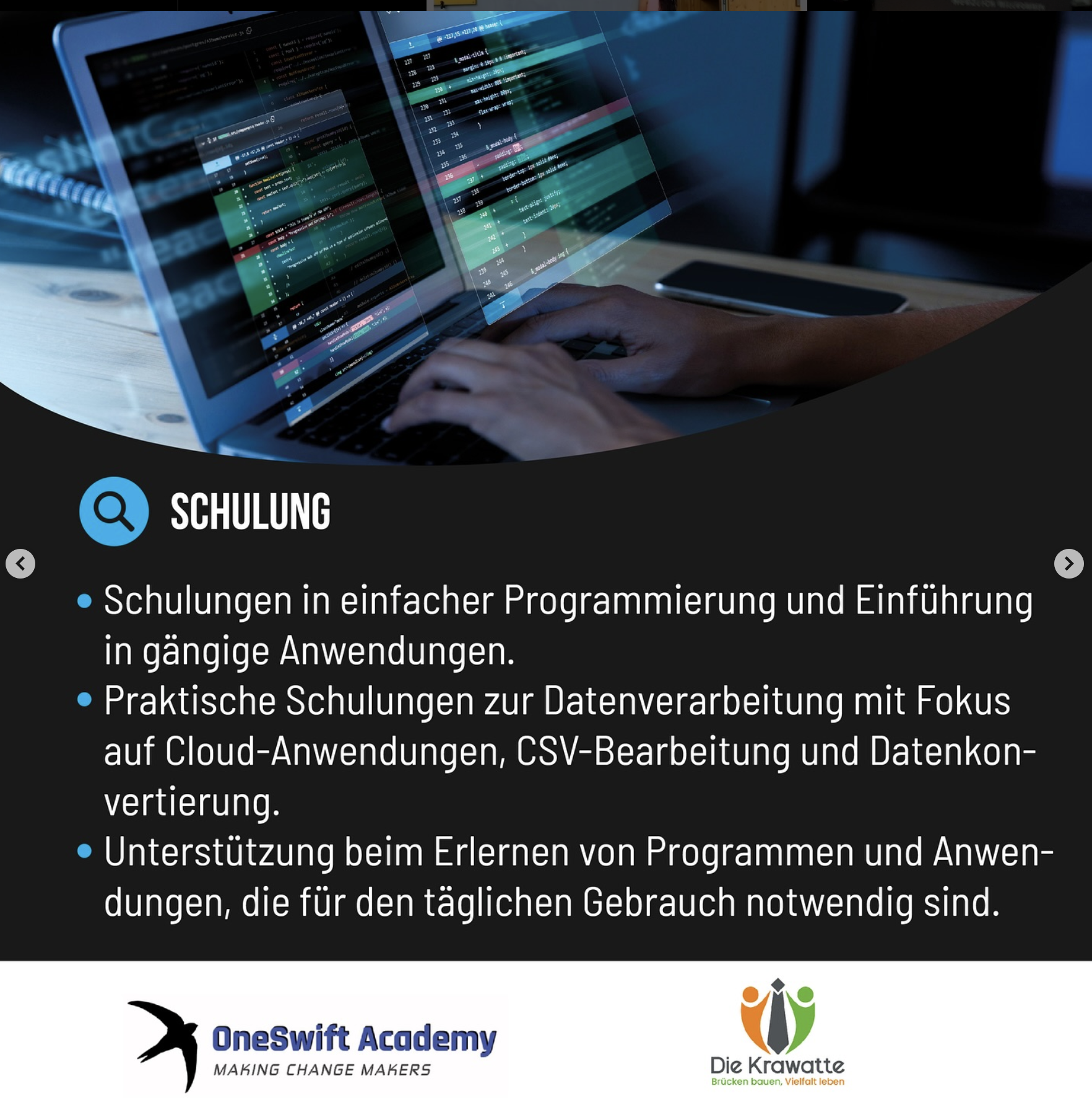 – Schulungen in einfacher Programmierung und Einführung in gängige Anwendungen.