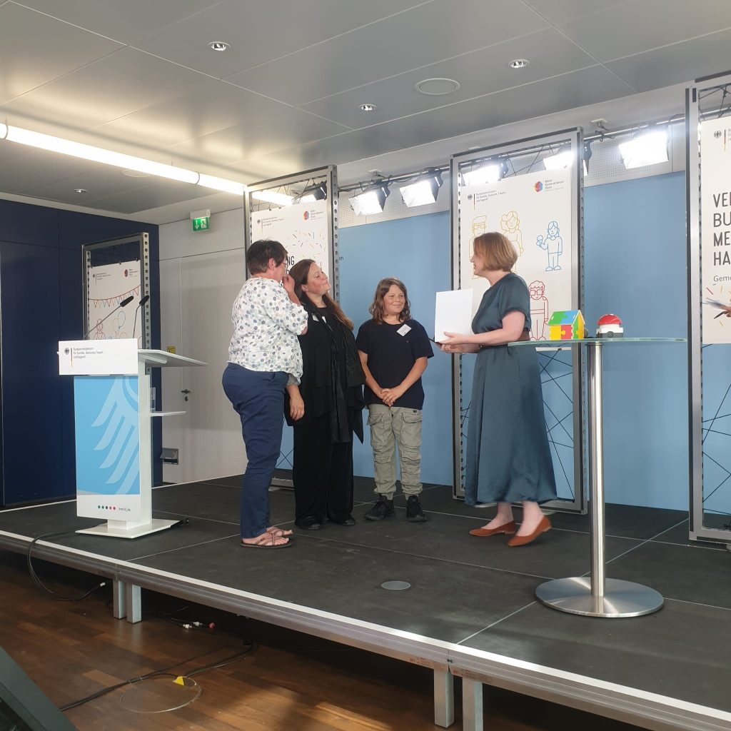 In Berlin hat das Team vom Wuppertaler Nachbarschaftsheim den Bundespreis von Familienministerin Paus bekommen. ©Team Lindh