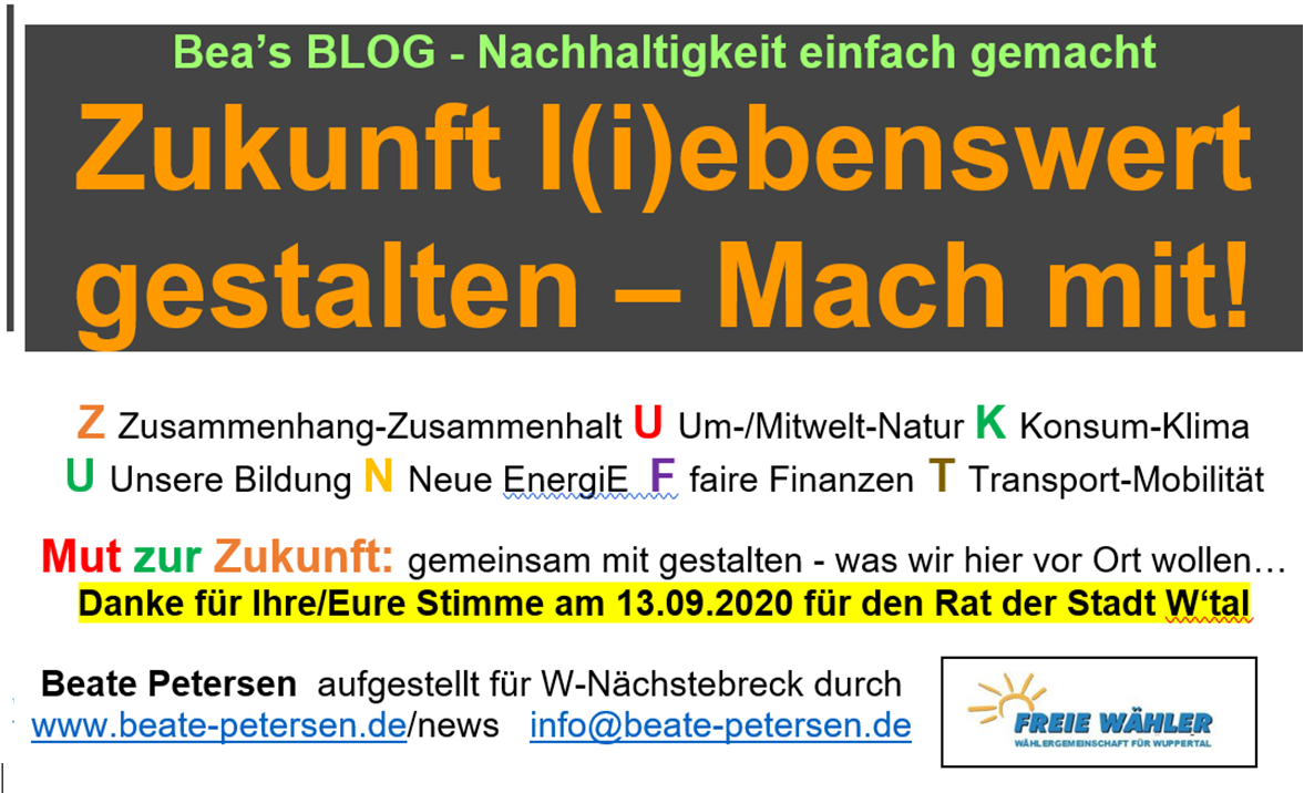Weitere Handlungsoptionen aus meinem bürgerschaftlichen Engagement und Artikel meines Blogs „ZUKUNFT“ siehe hier: www.beate-petersen.de/news/