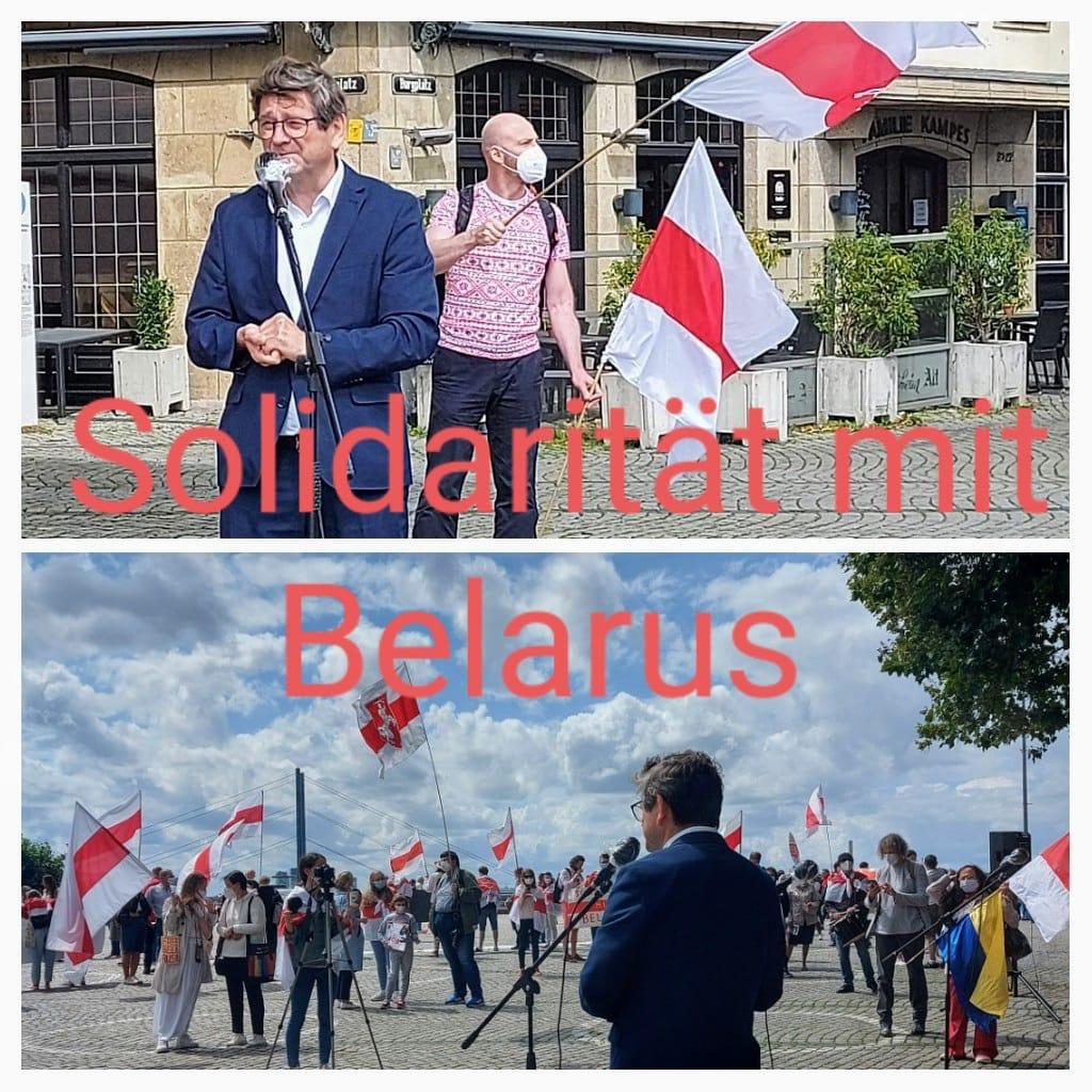 Der Wuppertaler Landtagsabgeordnete Josef Neumann hat in seiner Funktion als stv. Vorsitzender der NRW-Parlamentariergruppe Polen-Mittelosteuropa auf einer Solidaritätskundgebung für die Demokratiebewegung in Belarus am Sonntag auf dem Burgplatz in Düsseldorf gesprochen. Die Veranstaltung wurde vom belarussischen Verein Razam organisiert.