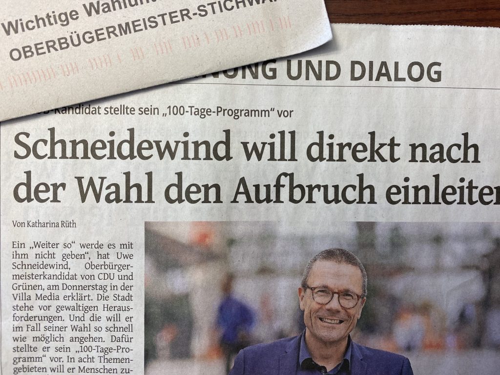 dem 100-Tage-Programm des Oberbürgermeisterkandidaten Uwe Schneidewind