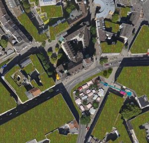 Ausgehend von einem Sommertag mit wenig Wind wurde ein Zeitraum von 24 Stunden betrachtet. Ausgehend vom jetzigen Zustand wurden bis Mitternacht Oberflächentemperaturen großflächig zwischen 24 und 29 Grad Celsius erreicht. Dies ist aufgrund der gewählten Materialien die Folge der gespeicherten Sonnenenergie in Gebäuden, Straßenoberflächen und Plätzen.