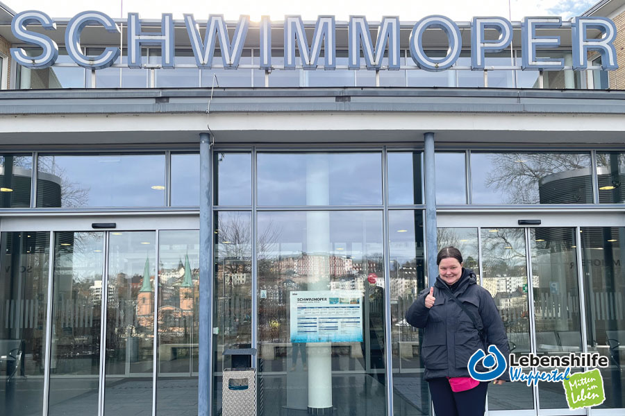 Lebenshilfe-Mitarbeiterin Linda Reckling nach ihrem Rundgang durch die Schwimmoper. ©Katharina Müller / Lebenshilfe Wuppertal„Mit den Begehungen bezwecken wir, dass wir vor allem die Punkte identifizieren können, die für Menschen mit ganz unterschiedlichen Hintergründen wichtig sind“, erklärte Dr. Jonas Wibowo, der dem Akademischen Rat der BUW angehört. In Hessen und Sachsen-Anhalt gebe es zwar bereits Sportatlanten, die Betreiber könnten sich hier aber noch selbst einschätzen. Das will man mit dem Projekt „No Bars“ ändern.