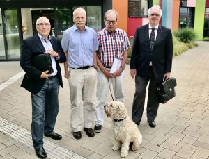 Vor der Junior Uni: Prof. Dr. h.c. Ernst-Andreas Ziegler (2.v.l.), Gründer der Wuppertaler Junior-Uni, mit den Ehrenpräsidenten des Marketing-Clubs Bergisch Land Vok Dams (l.), Dieter Lübcke (2.v.r.), sowie dem früheren Präsidenten Erich Giese (2017)Dieter Lübcke schreibt über den Gründer der Wuppertaler Agentur VOK DAMS worldwide: „Kompetenz und Persönlichkeit machten Vok Dams zum Botschafter seiner Heimatstadt Wuppertal und zum Präsidenten des Marketing-Club Bergisch Land.“