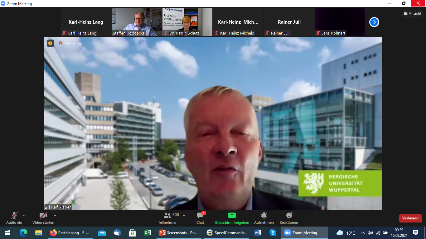 15:45 Uhr (MEZ): Prof. Dr. Ralf Pieper (BUW) sprach die Schlussworte zur Web-Konferenz und verabschiedete alle Teilnehmenden in den wohlverdienten Feierabend. ©ASER, WuppertalProgramm und die Teilnehmenden-Unterlage des aktuell laufenden Sicherheitswissenschaftlichen Forums der Bergischen Universität Wuppertal und des 13. VDSI-Forums der fünf VDSI-Regionen im Land Nordrhein-Westfalen, welches in Kooperation mit der Deutschen Gesellschaft für Public Health e.V. (DGPH), dem Erich Schmidt Verlag (ESV) und dem Institut für Arbeitsmedizin, Sicherheitstechnik und Ergonomie e.V. (ASER) durchgeführt wird.