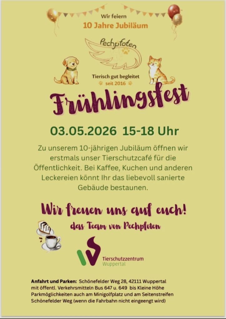 Was für eine schöne Nachricht von den Pechpfoten! Die Pechpfoten laden Euch herzlich zu ihrem Frühlingstreffen am 03. Mai 2026 ein und es gibt wirklich allen Grund, sich darauf zu freuen. Denn an diesem Tag könnt Ihr nicht nur den Verein und die Menschen dahinter näher kennenlernen, sondern auch...